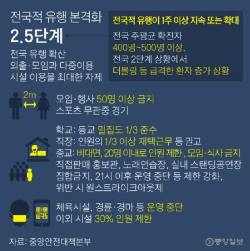 우선 거리두기 단계는 1,2,3,4,5단계로 분류되는 것이 아니고 1, 1.5, 2, 2.5, 3 단계로 분류됩니다.