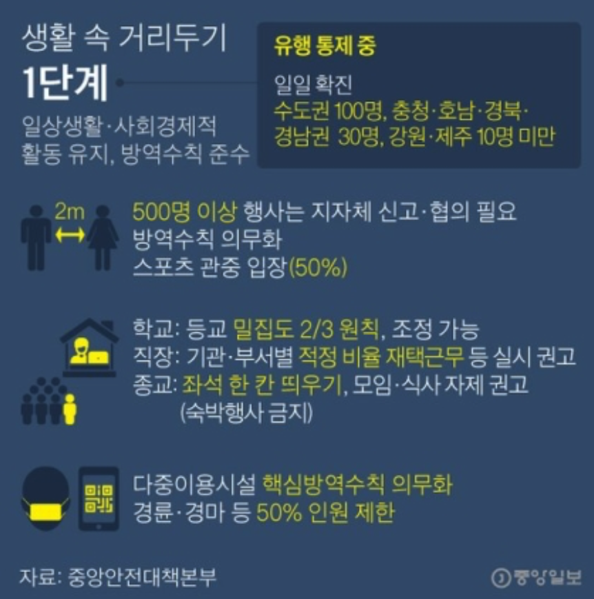 사회적 거리두기 5단계 중에 첫번째 1단계입니다.