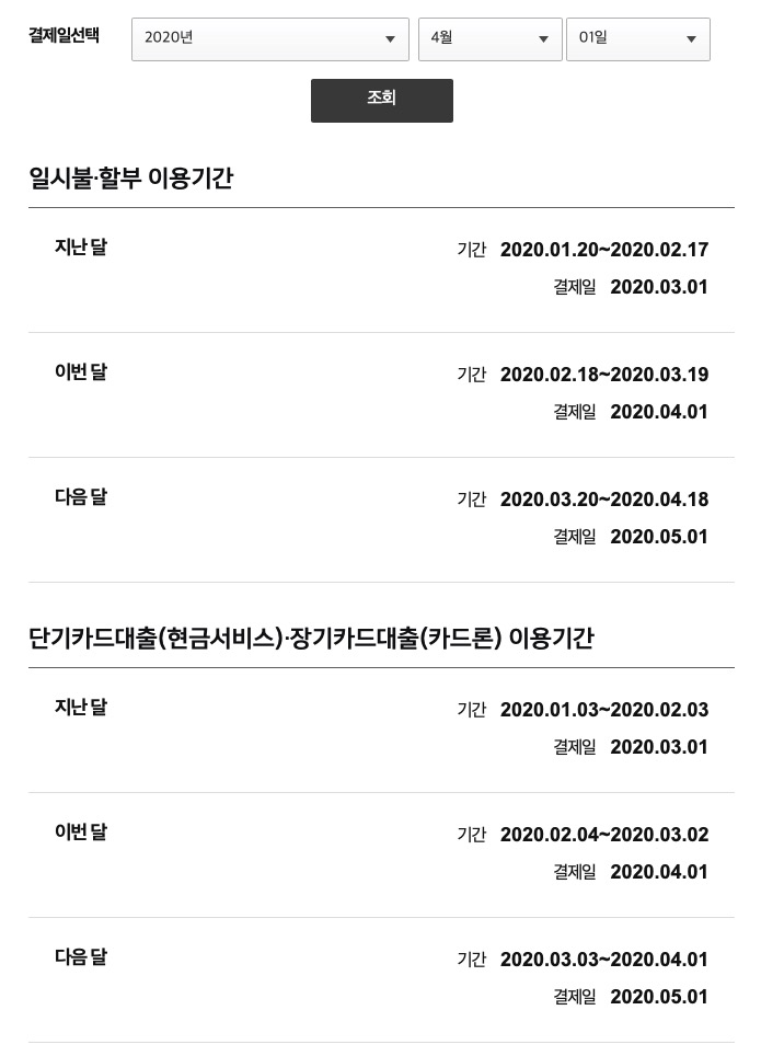 이렇게 날짜마다 결제일 다르다는 것을 확인해 볼 수 있습니다.